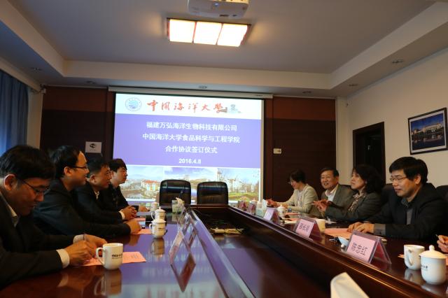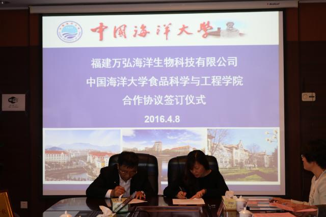 本站讯 4月8日下午,福建万弘海洋生物科技有限公司与黑料网 食品科学与工程学院(以下简称食品学院)合作协议签字仪式在行远楼会议室举行。