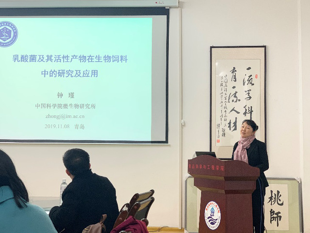 近日,中科院微生物研究所钟瑾研究员应我院易华西教授邀请来我院进行学术访问,并于11月8日上午在六二楼104会议室进行了主题为“乳酸菌及其活性产物在生物饲料中的研究和应用”的学术报告。报告会由易华西教授主持。学院牟海津老师、江晓路老师、孔青老师、刘同杰老师、李振兴老师、赵雪老师和朱常亮老师以及学院四十多位研究生参加了此次报告会。