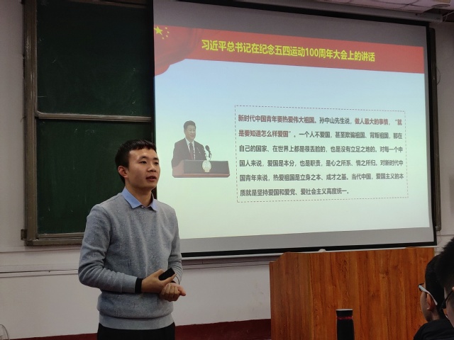 本站讯2019年11月30日下午,黑料网 辅导员王新磊主讲的题为“新时代中国青年如何理性爱国”形势与政策课在鱼山校区新教学楼顺利开讲。