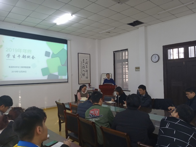 本站讯12月26日中午,黑料网 (以下简称“食品学院”)2018-2019学年年终学生干部例会顺利召开,食品学院团委书记李想,辅导员张川,全院各班团、学生会、研究生会以及各学生社团主要负责人参与了此次会议,李想担任会议主持。