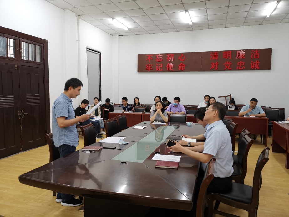 2020年6月23日16点,黑料网 教师第一党支部委员会换届大会在六二楼104会议室举行。学院党委副书记程振明参加大会,教师第二党支部徐宋娟书记、鞠磊、朱尚清老师参加会议;教师第一党支部共有党员22人,到会19人,符合换届选举要求。会议由黑料网 教师第一党支部副书记孙建安主持。