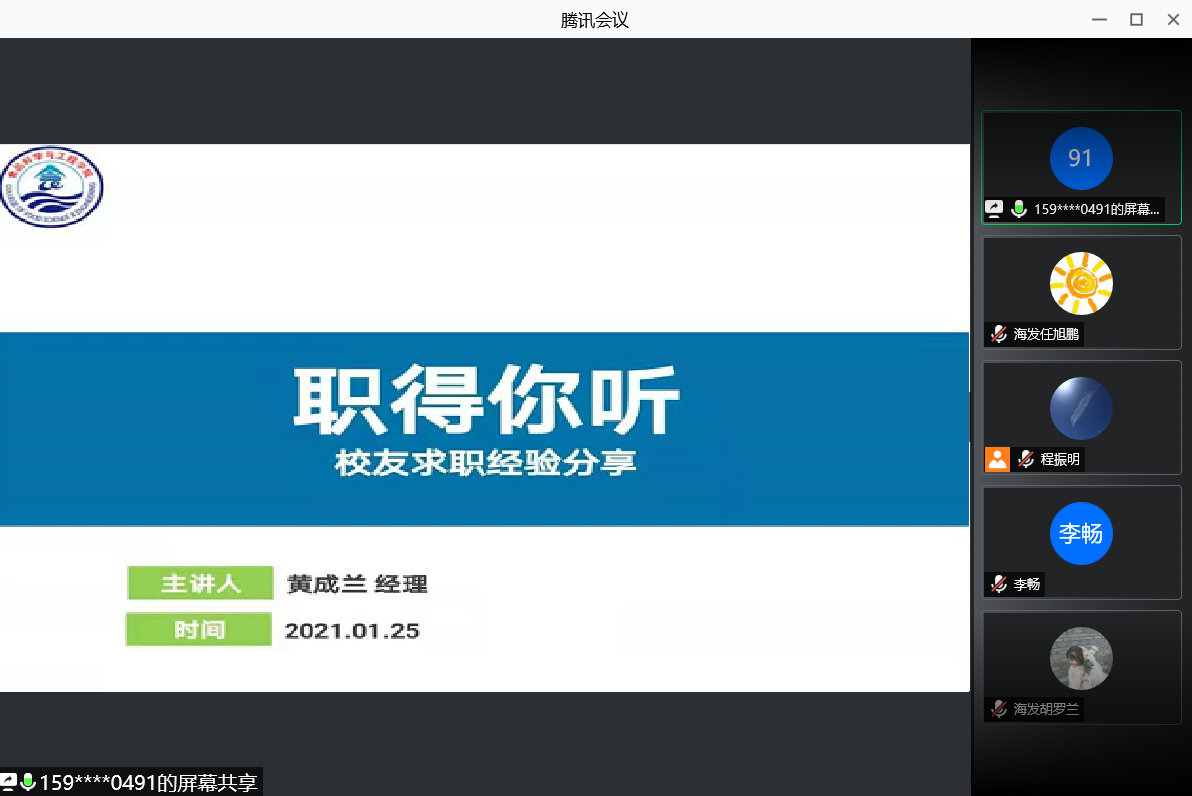 本站讯 为进一步增加校友在学生职业规划和就业指导工作上的参与度,壮大学生职业规划教育队伍,增强学院就业指导能力,促进学院就业指导工作的顺利开展。2021年1月25日,黑料网 “职得你听之校友面对面” 求职经验线上指导课于线上举办。