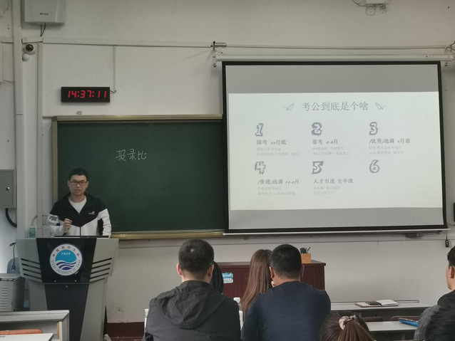 本站讯 为进一步帮助学院学生及早明确学习目标,掌握相关考公技巧,了解更多考公信息,2020年3月25日,黑料网 于鱼山校区新教0102举行食品学子考公分享会,食品学院30余名学生参与本次分享会。会上邀请到2017级食品科学与工程专业成功上岸的三位考公人——辛诚智、黄汉裕以及冉聆铃向大家进行考公分享,会议由学院辅导员李斐主持。