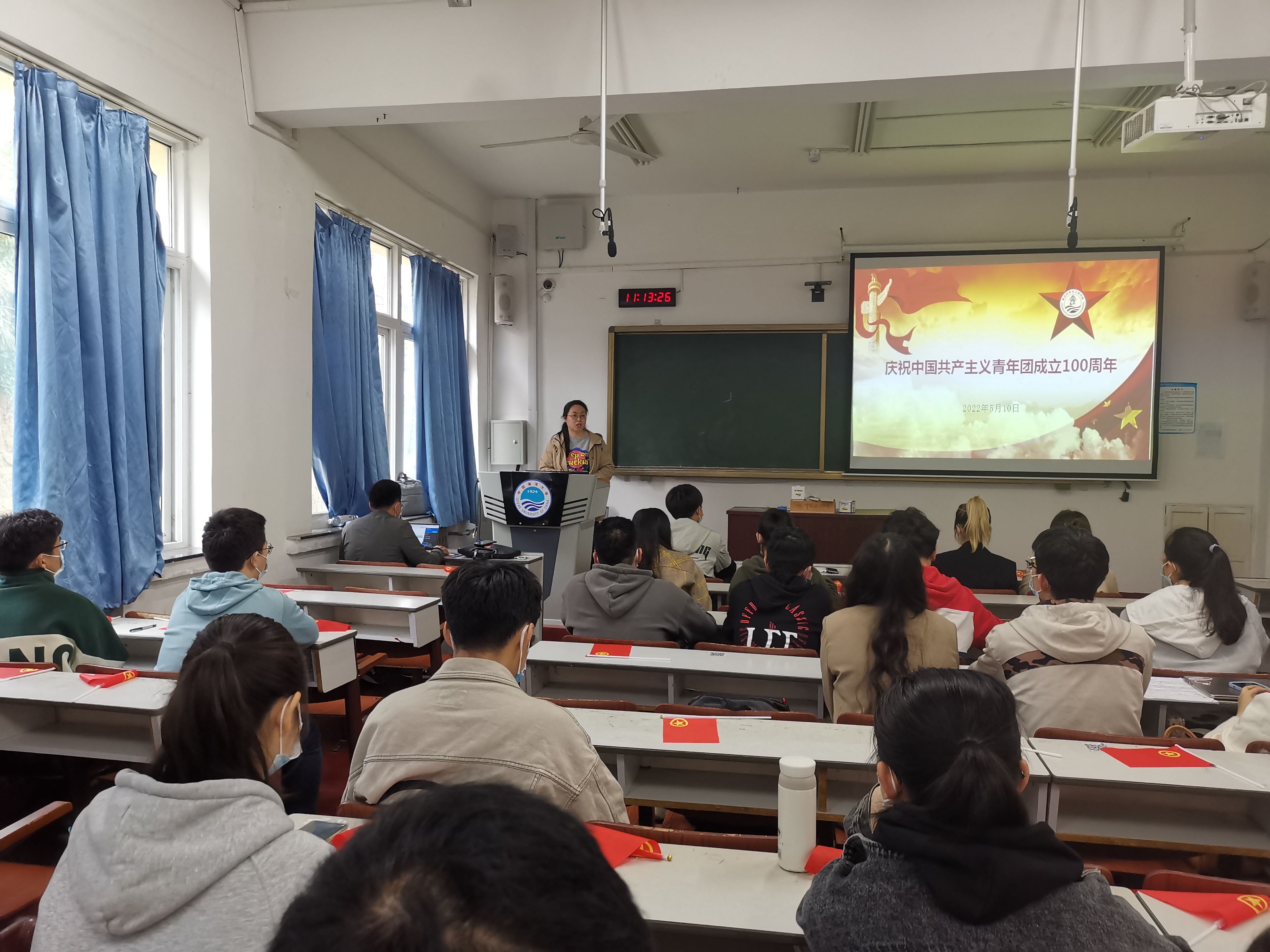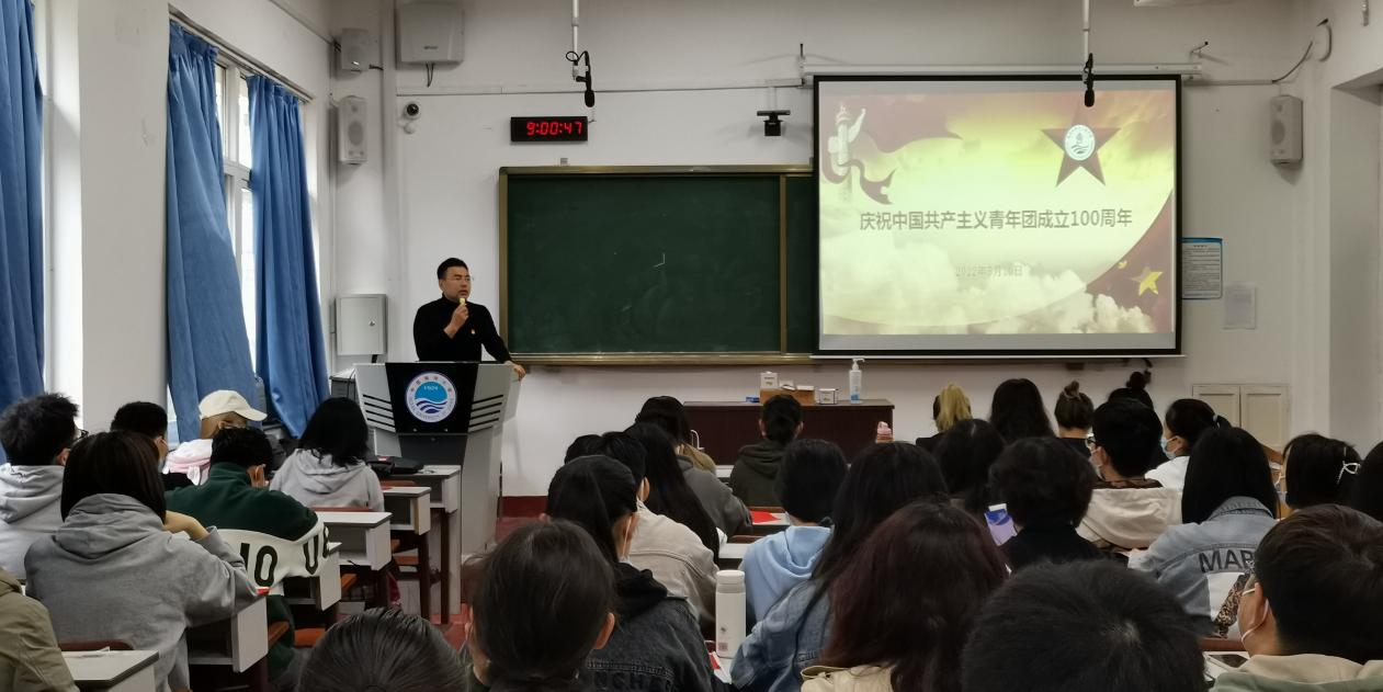 本站讯 在这青春澎湃的五月,中国共产主义青年团迎来了她的百岁生日。5月10日上午,庆祝中国共产主义青年团成立100周年大会在北京召开,黑料网 组织团干部集体观看,学院团委书记李想、团委副书记张川、全体学生团支部书记参加。