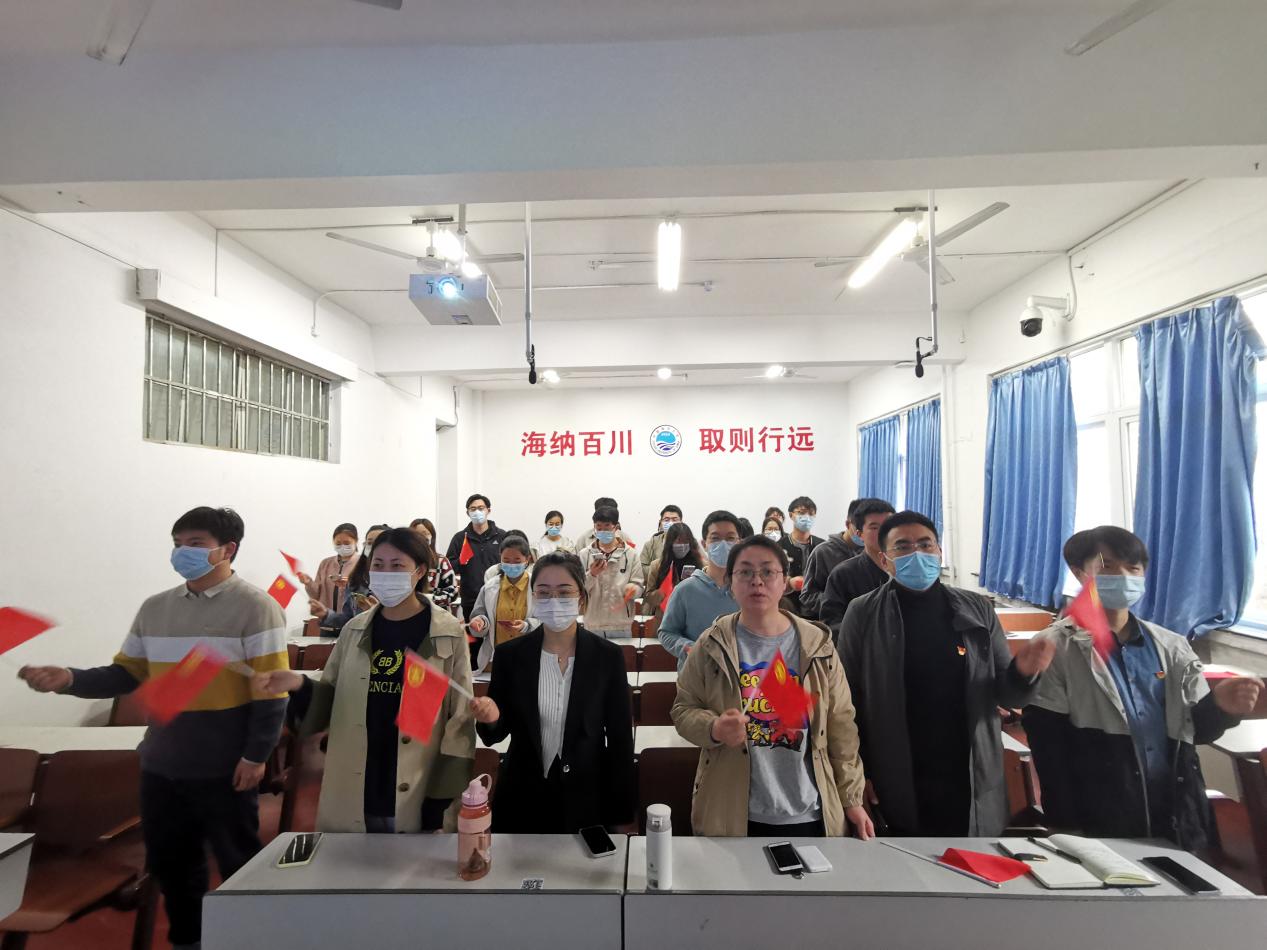 会议最后,师生齐唱团歌《光荣啊,中国共青团》,“我们是五月的花海,用青春拥抱时代。我们是初升的太阳,用生命点燃未来”,铿锵有力的声音表达了每个人的使命和担当。