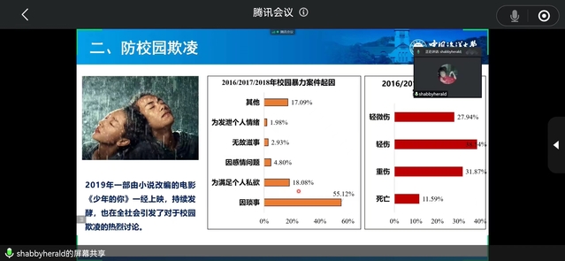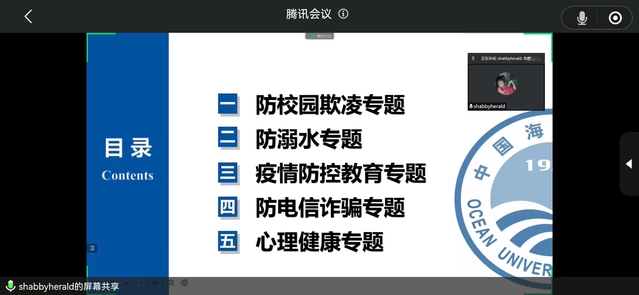 会议第二项,由各班负责人轮流讲解“防校园欺凌”“防溺水”“疫情防控”“防电信诈骗”以及“心理健康”五个安全专题教育,通过真实案例、视频文件等,生动深入进行安全教育,全面提醒同学们提高自我防护意识,确保人身财产安全。