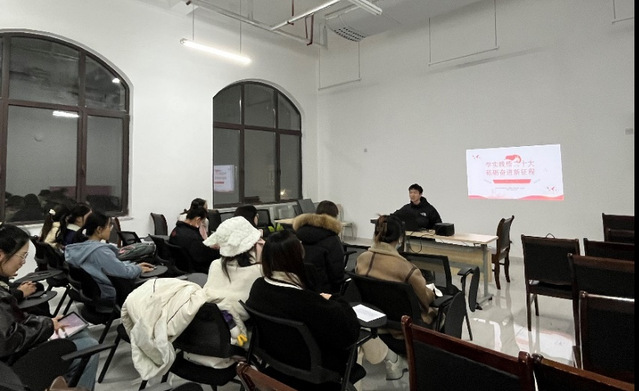 本站讯 11月29日晚,2022级食品科学与工程硕士研究生第二党支部在食工楼149热烈开展“学思践悟二十大,砥砺奋进新征程”主题党日活动。周金杭同志主持活动,支部全体党员认真学习研读党的二十大报告,结合个人经历和研究领域逐一分享学习感受,交流学习体会。