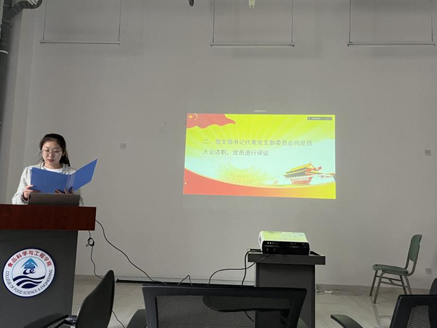 随后,步雨珊同志就2022年工作情况进行述职报告,从党支部基本情况、党支部委员会建设、主题党日活动、支部品牌建设等方面介绍了党支部的工作,提出了过去一年工作存在的不足及改进思路。她表示,今后要进一步充实支部的组织生活,每一次活动都要有实在内容,使每位党员都能有所学,有所得,有所获。要注重开展既有学科知识背景又有党建研讨性质的组织生活,促进党建与专业建设有效融合。