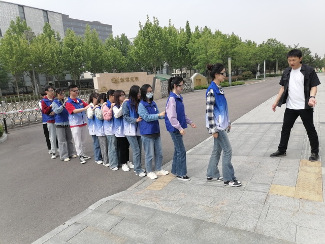 活动伊始,青岛市盲校团委书记史春成为志愿者一行介绍本次体验活动的具体内容,在活动中志愿者将佩戴特制眼镜体验盲人的现实生活。他希望志愿者们通过近三小时的换位体验切身感受盲人生活的实际,并在未来的工作和生活中珍惜光明,关爱特殊群体。