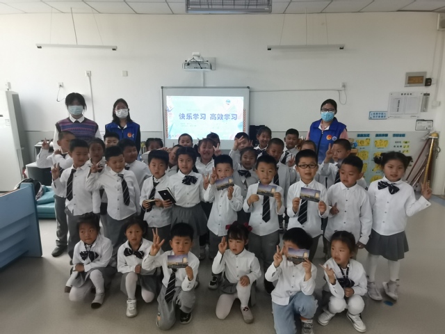 图1.志愿者为孩子们传授高效学习的小技巧