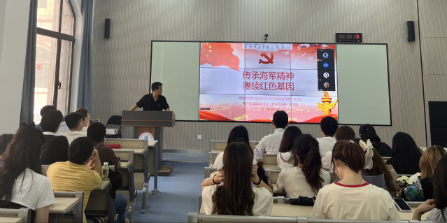 勇闯深蓝,是人民海军使命所系。活动伊始,全体党员一同观看了《壮丽新航程》-航速,全面展示了人民海军挺进深蓝的铿锵步伐。观影结束,教工支部齐祥明同志向全体党员介绍了党的发展史、奋进史,以及中国人民解放军海军的发展历程,并通过分享个人入党经历鼓舞学生党员不忘初心、砥砺前行。