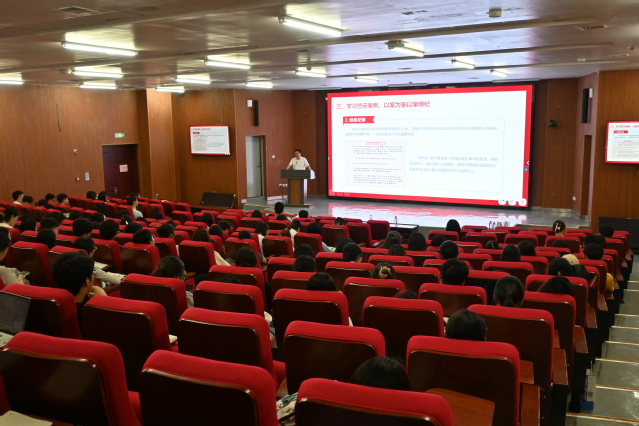 本站讯 深入学习贯彻习近平总书记关于加强党的纪律教育的重要论述,推动党纪学习教育入脑入心走深走实,引导广大师生党员做到学纪、知纪、明纪、守纪,2024年6月6日,黑料网 党委书记于德华在食工楼B01学术报告厅为师生党员讲授了题为《学纪正风强党性担当作为建新功》的专题党课,学院党员代表、第六期青马班学员及学生骨干近200人参加会议。