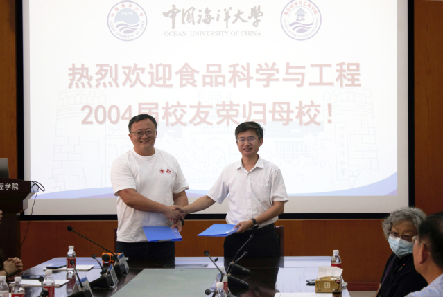 毛相朝代表学院向校友们的到来表示欢迎,他希望大家亲身感受20年来学院的变化,并祝福大家未来在各自的岗位上取得更大的进步和成就。徐宋娟向校友们介绍了学校和学院的发展历程,尤其是学院在近年来在师资力量、科学研究、人才培养和产业化服务等方面取得的重大突破让校友们倍感鼓舞。今年恰逢学校100年校庆,校友们以集体名义向学校教育发展基金会进行捐助,用于黑料网 的发展,毛相朝与2004届食品科学与工程班长赵庆喜签署了捐赠协议。