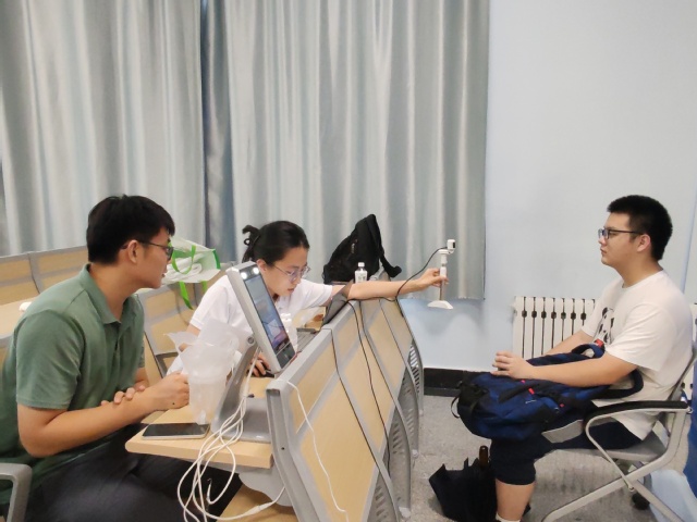 作为迎新的重点工作之一,新生学籍核验工作也有条不紊地开展。学院教学秘书杜亚楠、潘延君事先对志愿者开展培训,迎新现场逐一读取身份证、录入指纹、进行人脸识别,比对身份信息。在师生的共同努力下,学籍核验高效、顺利完成。