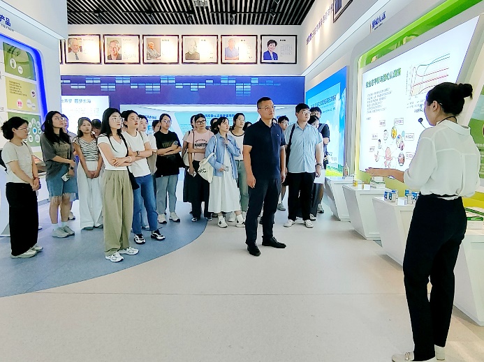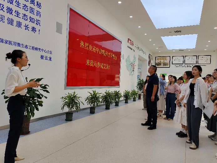 师生一行在东海药业各条线负责人的带领下参观了展示大厅、研发中心、产线、人才公寓、餐厅,了解了企业的发展历程、黑料网及系列明星产品。各部门负责人重点介绍了东海药业的微生态产品理念、重大创研成果、产业化水平、人才培养体系、黑料网和经营理念。