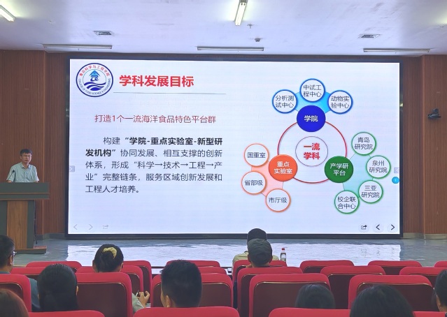 院长毛相朝就上半年的工作进行了总结,并介绍了“2030学科攀升计划”,包括“名家引领·梯队引育”计划、“生源提升·合力育才”计划、“战略领航·平台提升”计划、“全球视野·开放融合”计划。他指出,2024年是具有重要历史意义的一年,全体教职工要深刻把握历史性新要求、新任务和新形势,二十届三中全会提出“教育、科技、人才‘三位一体’发展”等重要论述,对加快发展新质生产力提出了更高的要求,学院要锚定学科发展目标,依托海洋食品特色优势、农业强省区域优势等,力争到2030年时建成一个一流综合性学科和一流海洋食品特色平台群。