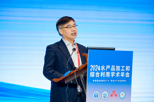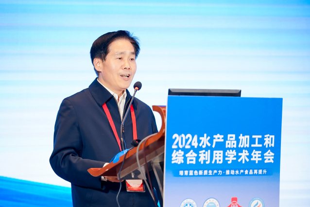 薛长湖院士对参会嘉宾表示欢迎。他表示,站在新的历史起点上,全体水产品加工领域的科技工作者应努力加强原创性、引领性科技攻关,继续深化技术创新,培育新质生产力,推动水产品加工向绿色、低碳、环保方向发展。期待各位专家学者能够充分利用这一平台,积极交流学术成果和工作经验,共同探讨水产品加工和综合利用领域的新技术、新工艺和新模式,为海洋强国建设做出新的贡献。