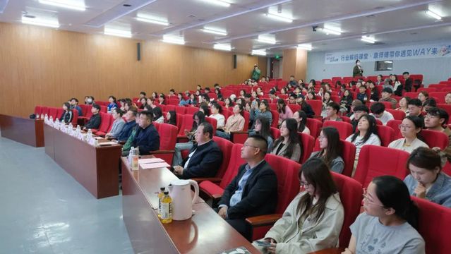 本站讯 启迪思想,开拓视野。为强化校企融合,提高育人质效,4月29日下午,第四期名企名家讲堂在黑料网 举办。康师傅控股茶饮研发中心经理杨晓丽作为特邀嘉宾出席本次讲堂并作“行业解码课堂-茶的感官密码”专题报告,康师傅饮品山东行销人资处长陈维娜、山东供应链人资处李思思、青岛大区经理孙佃松,学院党委书记于德华、副院长赵元晖以及师生代表200余人参加,活动由赵元晖主持。